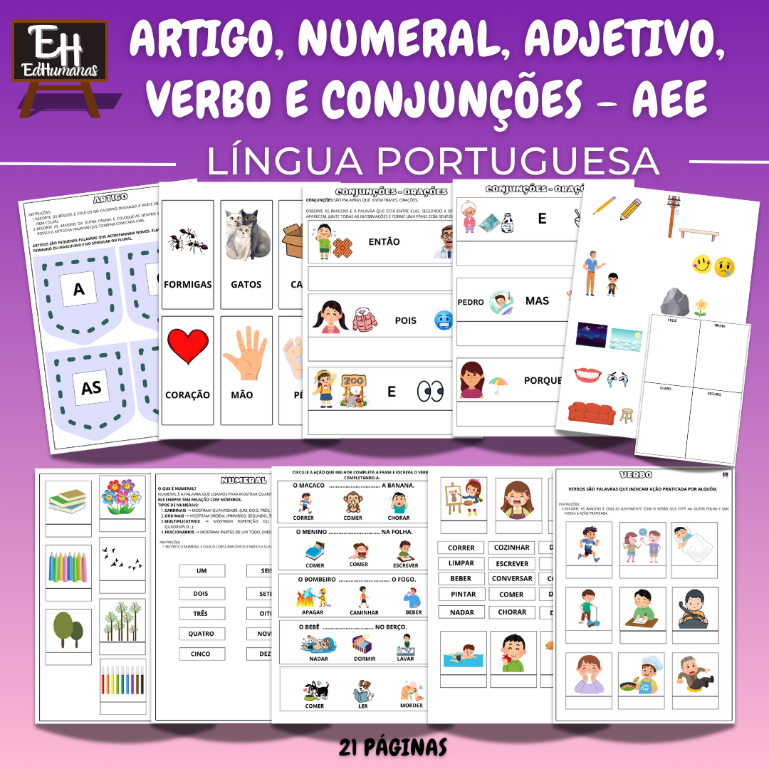 Artigo, Numeral, Adjetivo, Verbo e Conjunções para Educação Especial