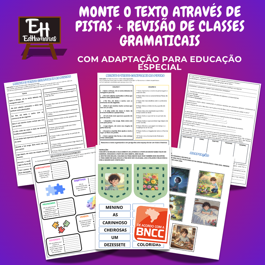 Monte o texto através de pistas + revisão de classes gramaticais