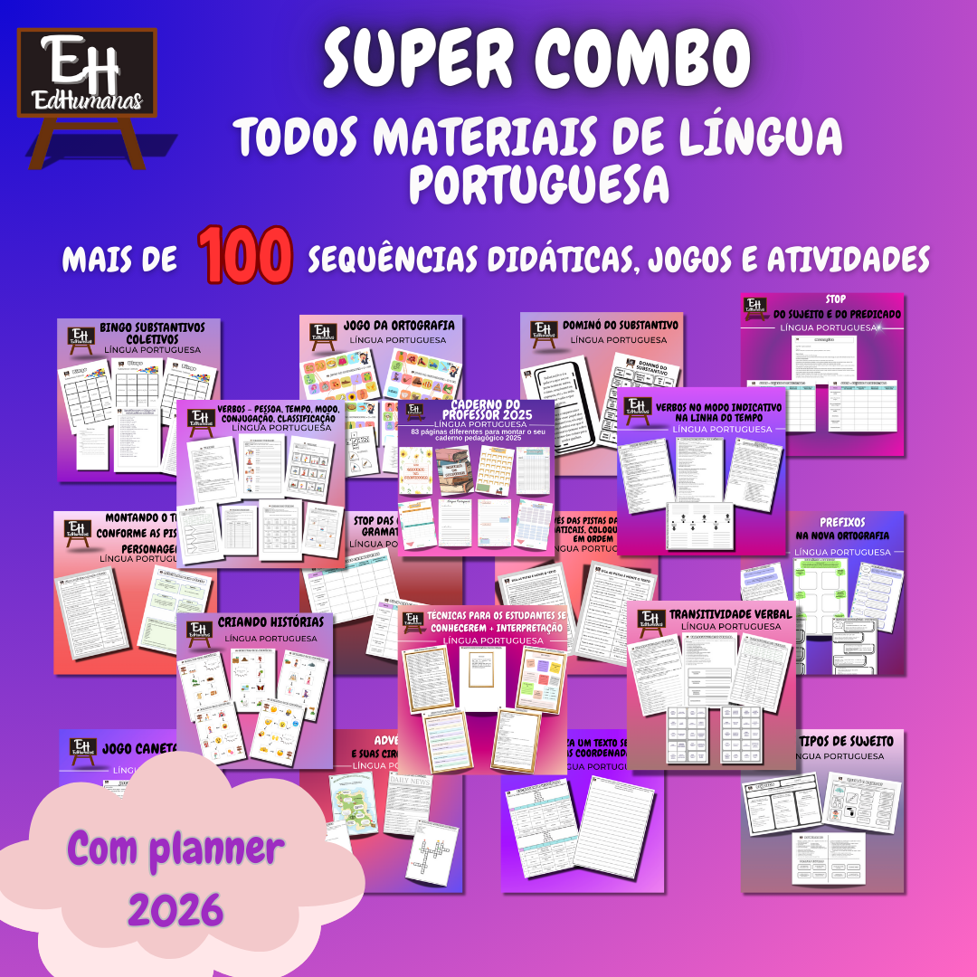 Super Combo com todos os materiais de Língua Portuguesa do site lançadas até o momento com 40% de DESCONTO.